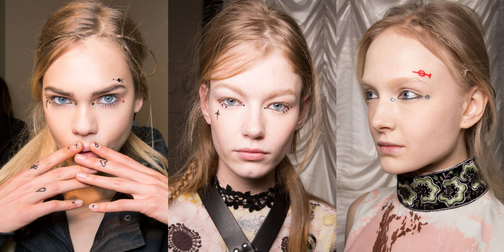 A big trend for 2015 is the temporary tattoos that we've seen a lot on the high street, and regularly seen on fashion bloggers. However, we've also now seen them on Giamba models for his Fall 2015 collection. It is apparent that he took inspiration from Cara Delevigne's happy go lucky approach to fashion. He wanted the girls to look rebellious and keep the girls barefaced with just the random tattoos as the focus point.